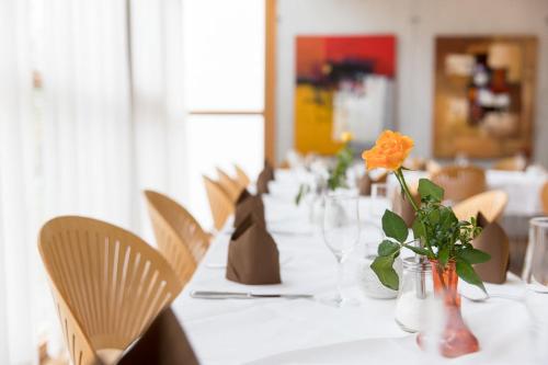 Ein herzhaftes Frühstück können Sie täglich im Speisesaal erwerben. Sie können auf der großen Gartenterrasse mit Blick auf die Landschaft speisen.