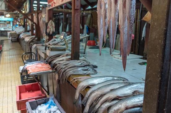Auf dem Marktgelände im Hafengebiet Angelmo wird neben fangfrischen Fisch auch regionales Kunsthandwerk zum Verkauf angeboten.