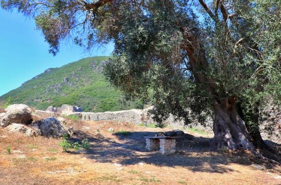 In dieser lauschigen Taverne oberhalb einer kleineren Sandstrandbucht sitzt man wie in einem Paradiesgarten. Katzen schmeicheln sich ein, unter dem hölzernen Terrassendach nisten Schwalben. Aprikosen und Feigen wachsen einem fast in den Mund. Von der Wirtsfamilie serviert werden Köstlichkeiten wie Kaninchen-Stifádo, skórpios bourdéto und die Kohlrouladen lachanodolmádes.