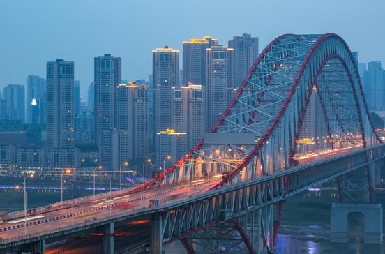 Mit einer Gesamtlänge von 1.741 Metern hat die Chaotianmen-Yangtse-Brücke die höchste Spannbreite aller Bogenbrücken weltweit. Das zweigeschossige Bauwerk ist über Gehwege auch zu Fuß betretbar.