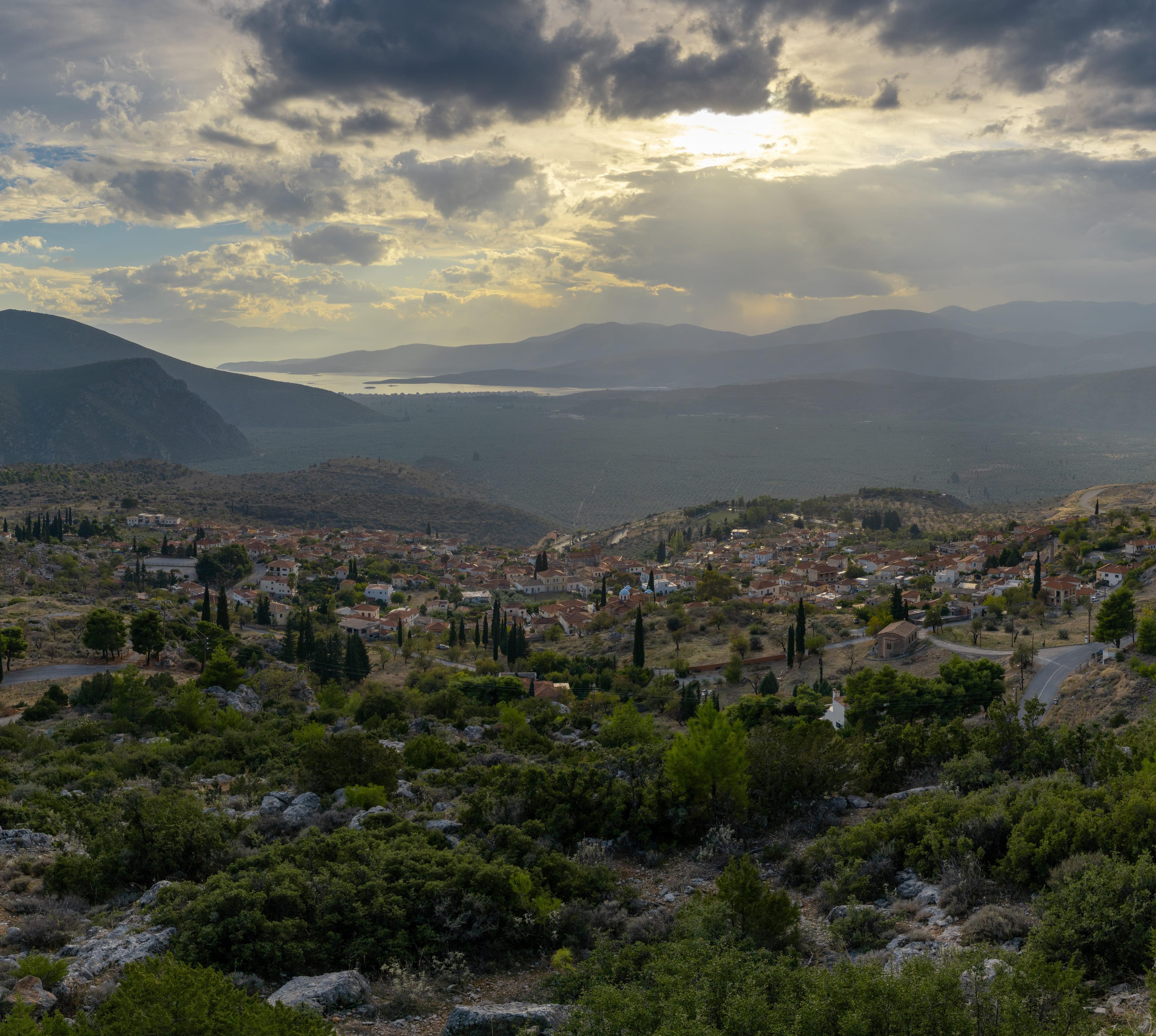 In tollster Landschaft erstreckt sich hier über einen recht steilen Hang eins der bedeutendsten Heiligtümer des Altertums. Es war Apoll, dem Gott der Schönheit und des Lichts, geweiht. Theater, Stadion und Tempel sind in schönste Landschaft zwischen dem fast 2500 m hohen Parnass- Gebirge und dem Korinthischen Golf eingebettet; das Museum von Delphi ist eins der bedeutendsten im ganzen Land. Grundlage für Ruhm und Reichtum Delphis war sein Orakel.