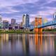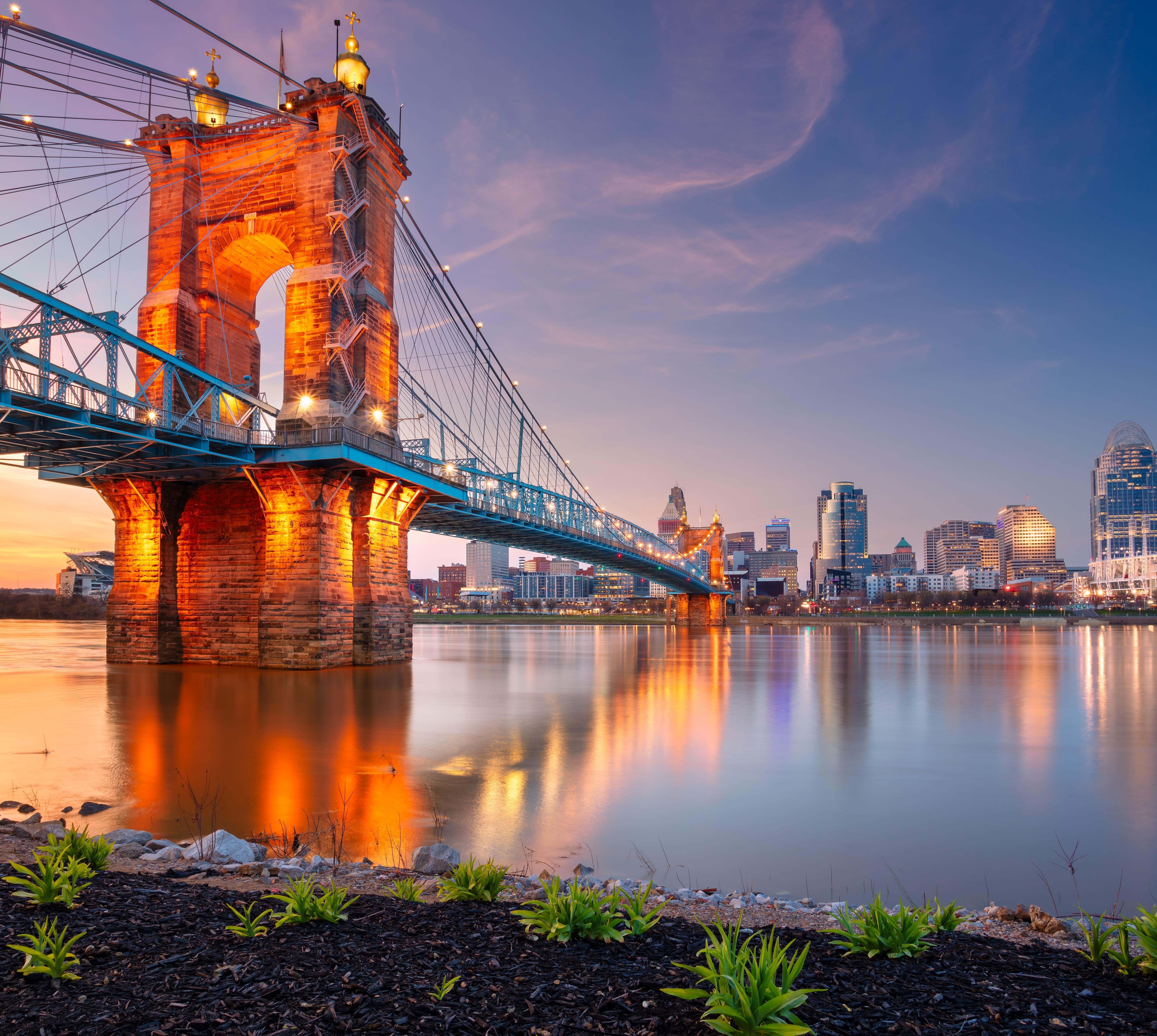 Die postmoderne Skyline rund um den Fountain Square (freies WLAN, Konzerte und dienstags farmers‘ market) nimmt sich am besten von der 1867 gebauten Roebling Suspension Bridge über den Ohio River aus. Was die noch andauernde Stadterneuerung bislang zustande gebracht hat, zeigt der neue Entertainment District The Banks am Ohio River.