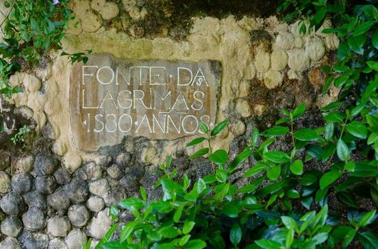 Die "Tränenquelle" ist ein beliebter Besuchspunkt nahe dem Teich im nur 12 ha großen Park Jardim da Quinta das Lágrimas.