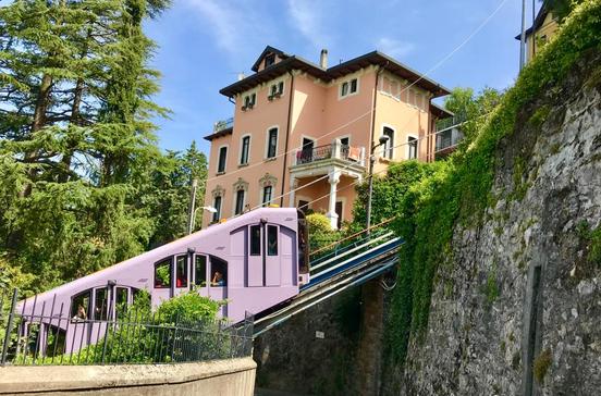 Einst ein kleiner Weiler oberhalb Comos, bis 1894 die Standseilbahn gebaut wurde. Seither hat sich Brunate zum Wohnort für privilegierte Villenbesitzer gewandelt. Die Fahrt von Como auf den „Balkon der Alpen“ dauert sieben Minuten. Von der Bergstation führen zwei gut ausgeschilderte Wanderwege nach Como zurück.