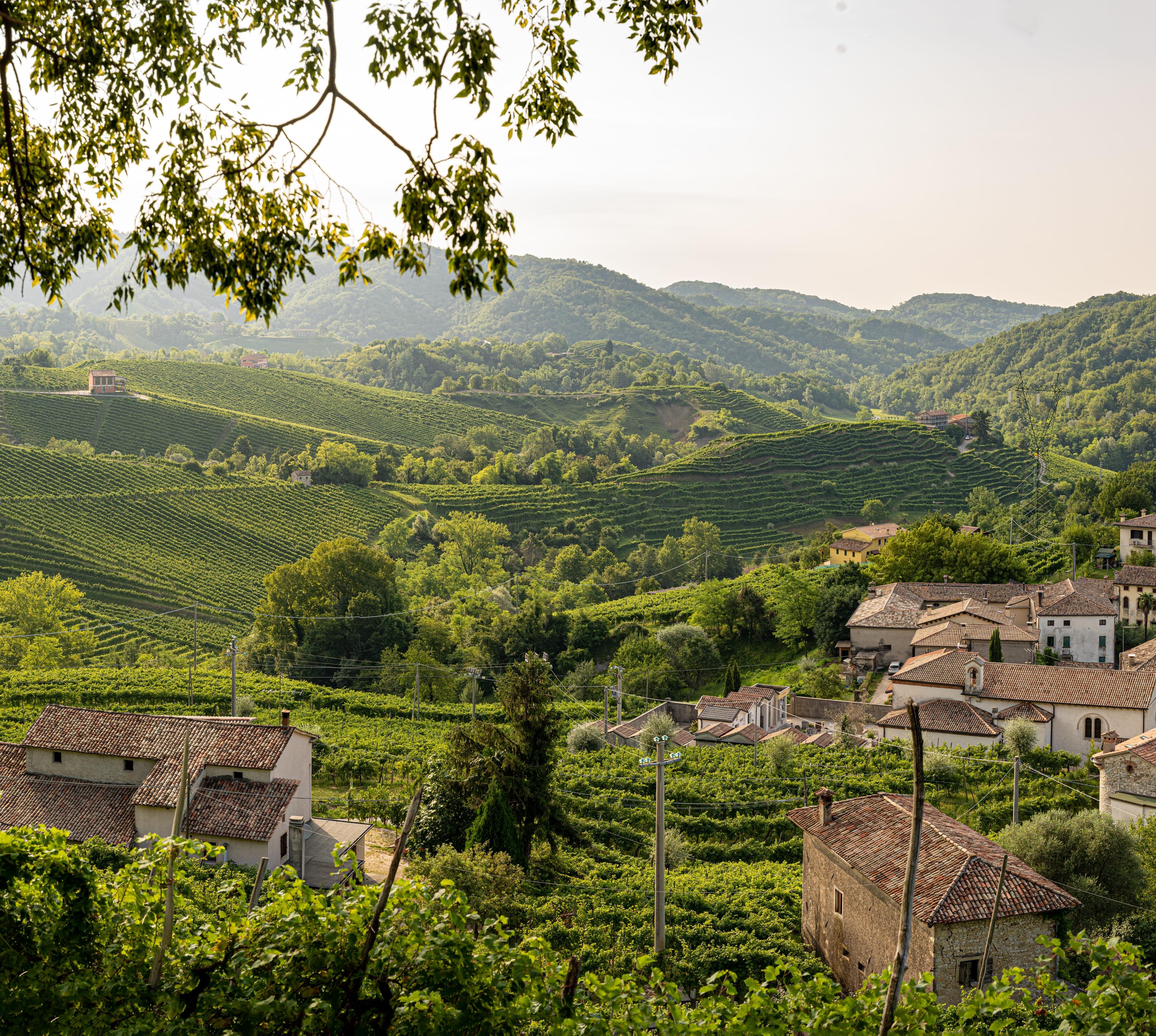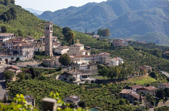 Über die Voralpen nördlich des Piavetals ziehen sich die Rebzeilen der Gleratraube, aus der der berühmte Prosecco gekeltert wird. Durch die Hügellandschaft schlängelt sich die Weinstraße, die die beiden Winzerstädtchen Conegliano und Valdobbiadene miteinander verbindet.