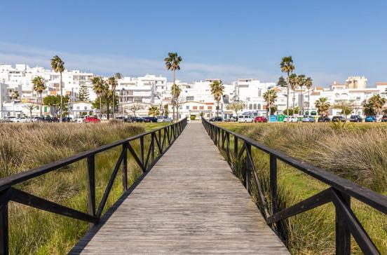 Der bei Deutschen sehr beliebte Badeort (23 000 Ew.) an der Costa de la Luz, einst Rucksacktouristen und Sprachschülern vorbehalten, ist längst von den Reiseveranstaltern entdeckt worden und versucht langsam, schicker zu werden. Davon ungerührt gehen die Bewohner weiter ihren Geschäften nach, was den authentischen Reiz des Orts ausmacht. Vor der Promenade erstreckt sich ein riesiger, mehr als 250 m breiter Strand. Er zieht sich im Süden kilometerweit bis zur Feriensiedlung El Palmar, deren Sandstrand bei Wellenreitern beliebt ist. Im Nordwesten liegen die Calas del Cabo de Roche, kleine Sandbuchten zwischen steilen Felswänden.