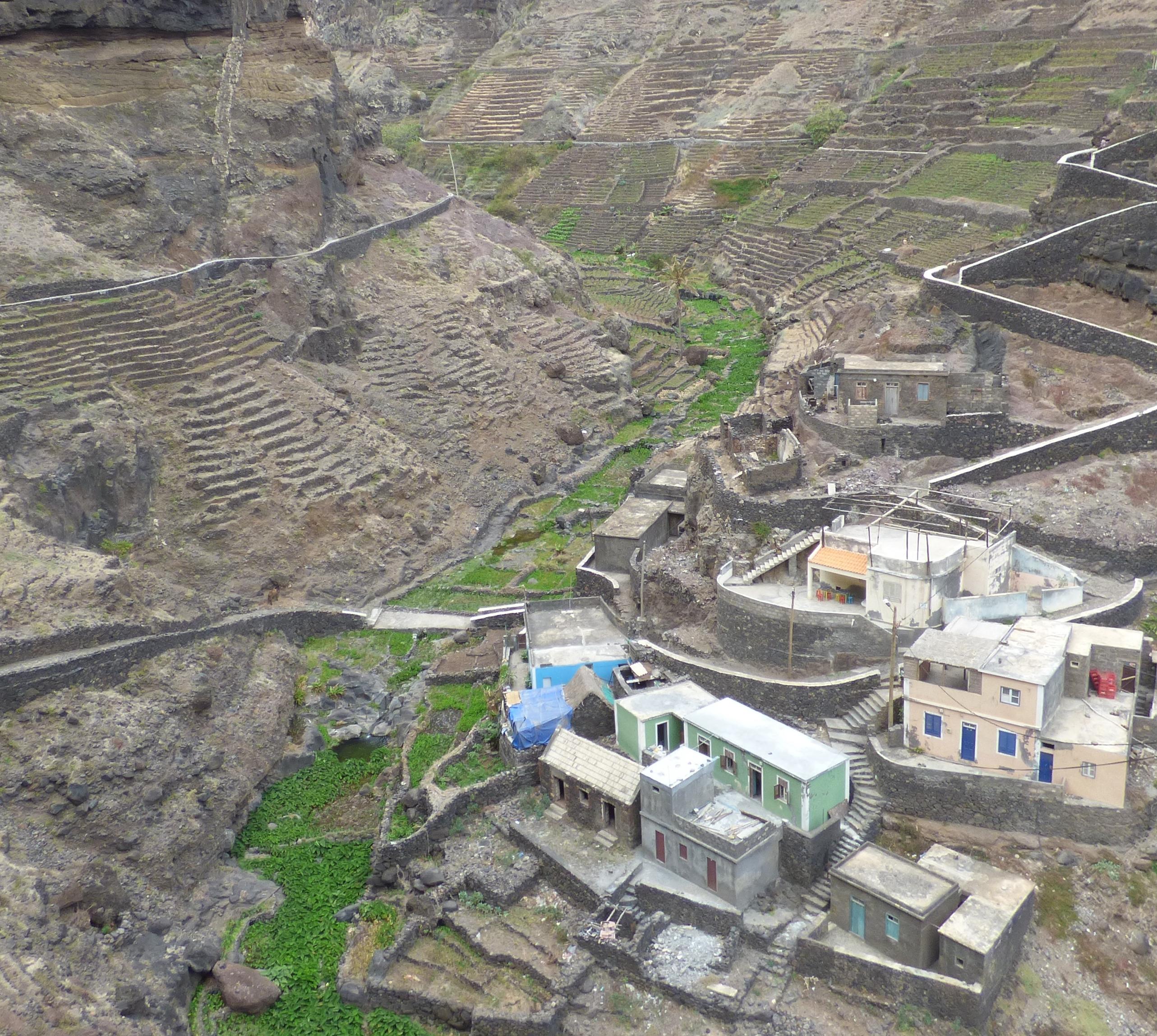 Auf der alten Pflasterstraße zwischen Porto Novo und Ribeira Grande liegt eine aufsehenerregende Engstelle. Rechts und links der Fahrbahn fallen die Felsen schwindelerregend fast senkrecht in die Tiefe. Auf der einen Seite schaut man in die Ribeira Grande, auf der anderen in die Ribeira de Torre, die Ribeira de Duque und die beeindruckende Felswand von Orgãos.