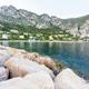 Weißen Kies an seichtem blauen Meer, hübsch gerahmt von Südalpenausläufern, bietet einer der Stadtstrände Beaulieus, La Petite Afrique.