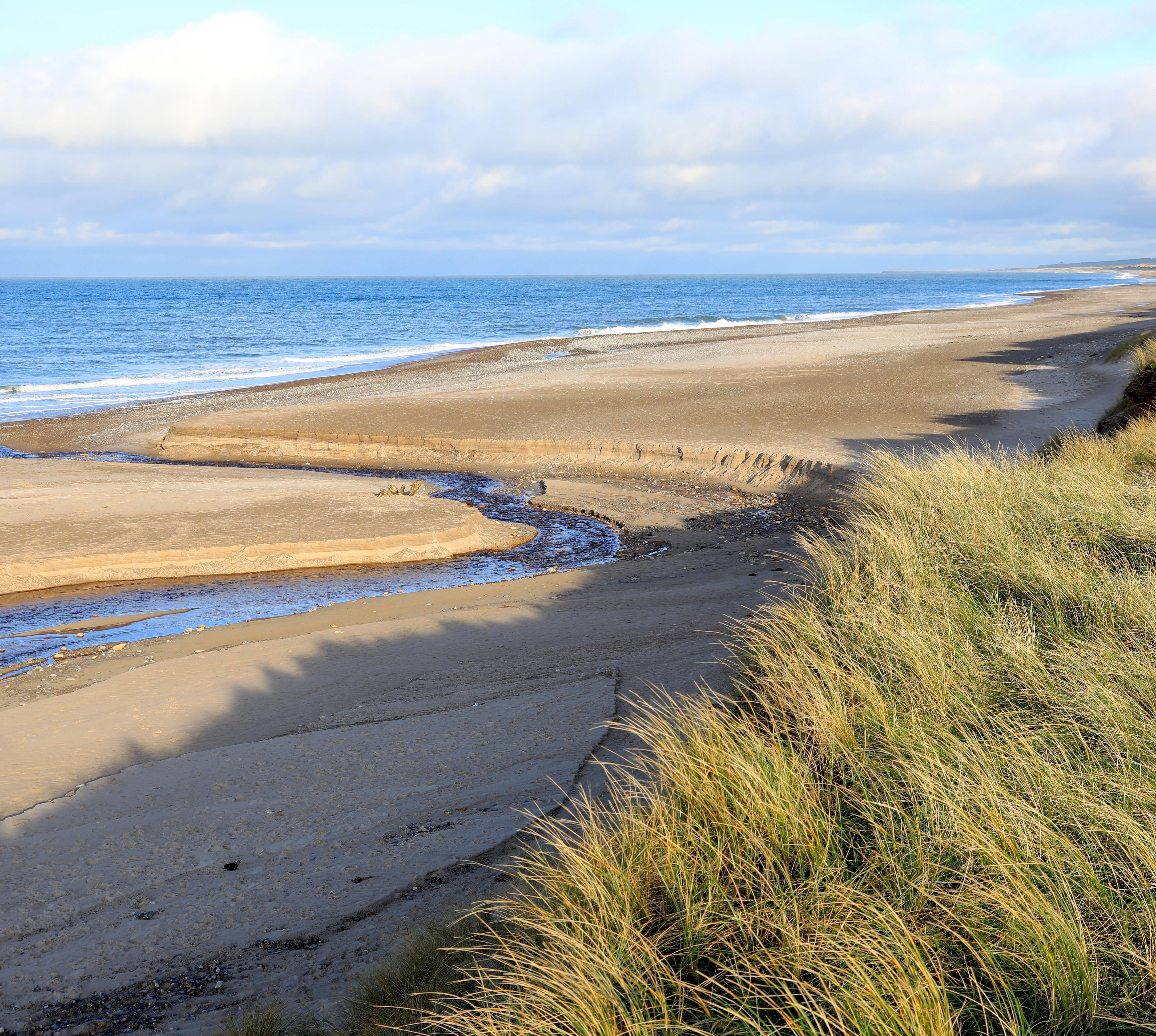 So liegt sie vor dir, die von Meer und Wind geprägte Küstenlandschaft der Region Thy: Dünen, Heide, um die 200 kleine Seen, dazu überall Wald – eine Klitplantage reiht sich an die nächste.