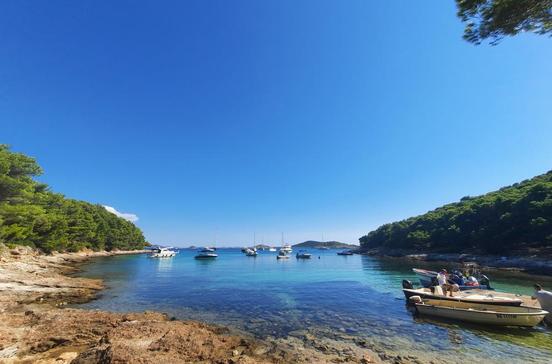 Zur unbewohnten, wenig besuchten Badeinsel Babac kann man sich mit dem Taxiboot übersetzen lassen.