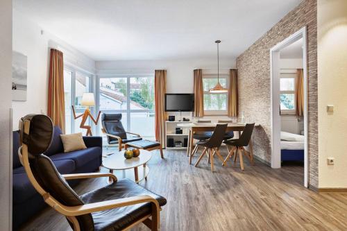 Für Ihre Auszeit halten wir für Sie eine große Auswahl verschiedener Hotelzimmer bereit. Alle Zimmer sind modern, freundlich und komfortabel eingerichtet. Unsere geräumigen Ferienwohnungen mit eigener Küche und zubuchbarem Hotelservice befinden sich direkt am Hotelgelände.