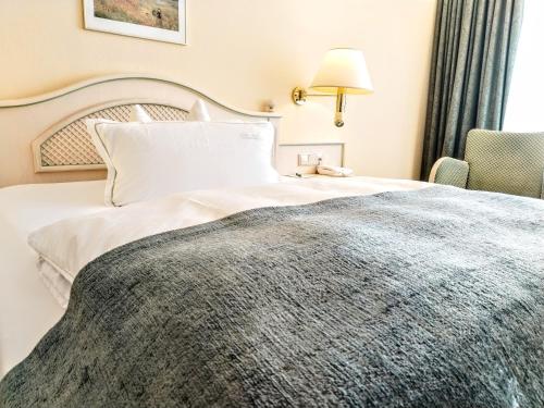 Genießen Sie eine erholsame Nachtruhe in einem der individuell eingerichteten Zimmer des Parkhotels Fischer, die in beruhigenden Pastelltönen gestaltet wurden.