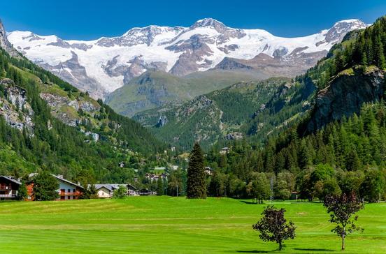 Bergbach mit drei Buchstaben – na?! Richtig: Lys. Hier unter der Brücke am Eingang der Gressoneytals 55 km südöstlich bei Pont Saint Martin präsentiert sich der Gegner vieler Kreuzworträtsler mit Wasserstrudeln. Die runde Steinbrücke darüber queren Menschen schon seit zwei Jahrtausenden: Sie wurde von den Römern gebaut und hält seither bestens. Weiter gehts geradewegs auf das grandiose Monte-Rosa-Massiv (4634 m) zu, durch Dörfer wie Saint-Jean oder La Trinité aus alten, verschachtelten Bergbau ernhäusern. Deutschsprachige Walser aus dem schweizerischen Wallis haben sie einst gebaut. An Zeitvertreib mangelt es nicht, denn schon lange haben die Mailänder und Turiner das Tal für ihre Wander und Ski wochenenden entdeckt. Eine Aufstiegsanlage bringt die Freerider auf 3275 m Höhe an den Gletscher Punta Indren, ein Skizirkus verbindet mit den Nachbartälern. Auf der Punta Gnifetti, der Gipfelspitze des Monte-Rosa-Massivs, steht auf 4554 m der Rifugio Regina Margherita, Europas höchstgelegene Berghütte.
