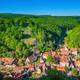 Der heilklimatische Luftkurort, 11 km nördlich, ist von einer Stadtmauer umgeben. Vom wuchtigen Torturm sind es nur wenige Schritte zum Markt, wo Roland und Kirche stehen. Zur mächtigen Ruine der Burg Hohnstein mit rustikaler Burggaststätte führt ein Wanderweg durch den Wald. Übernachten kannst du im Hotel Hohnstein mit harztypischem Restaurant.