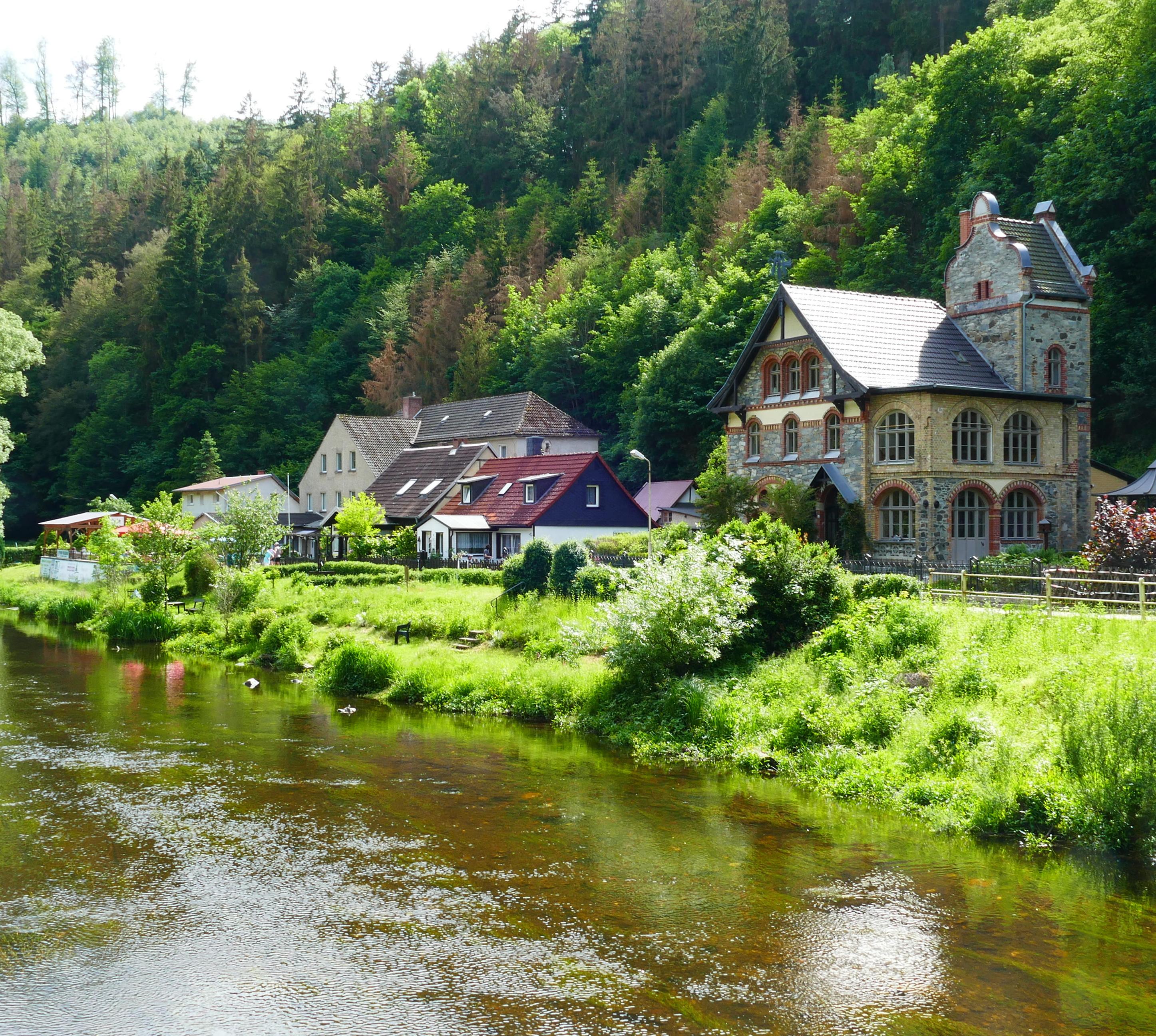 Romantisch und autofrei am Wanderweg von Thale nach Treseburg gelegen (das Gepäck wird transportiert, Gästeparkplatz im Ort), Harzer Küche mit Forellen, Sülzen und Wildgerichten.