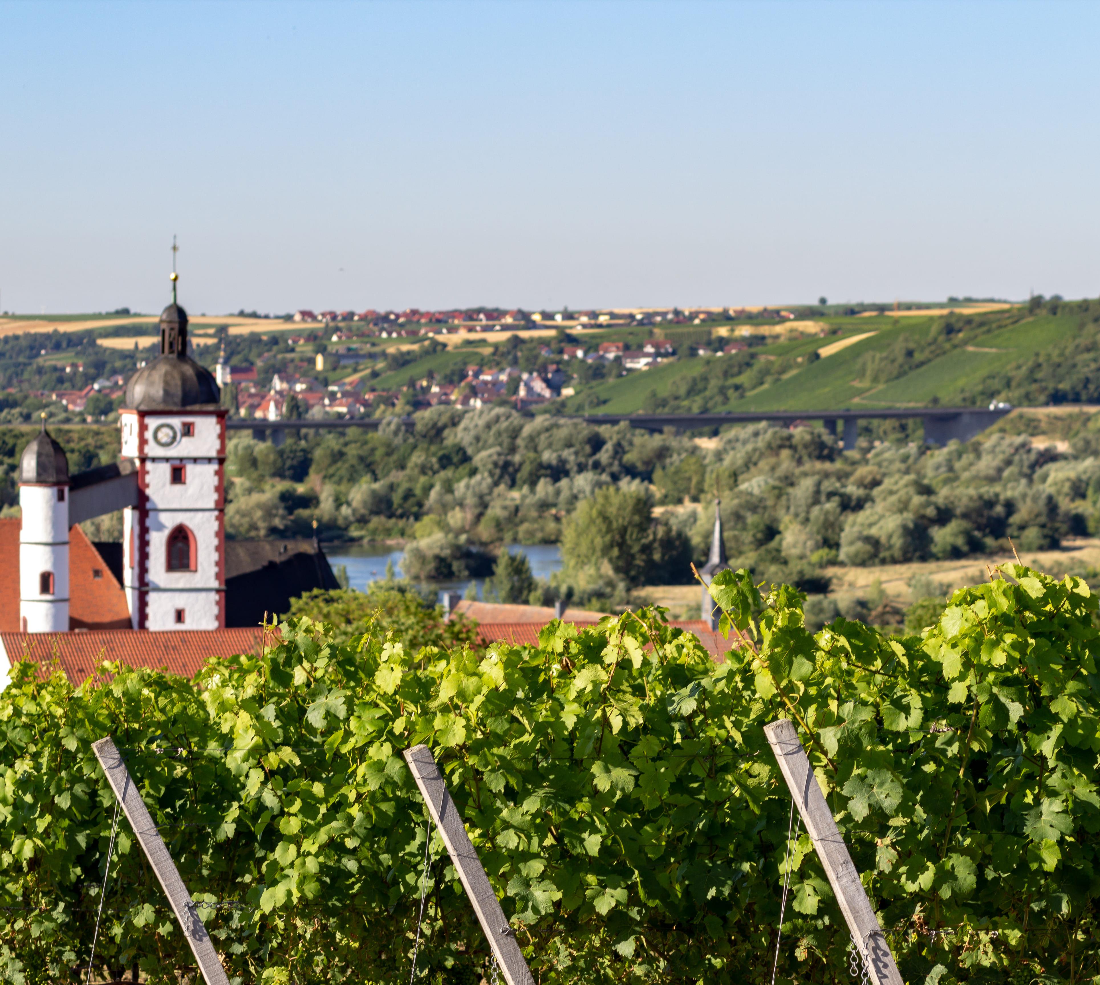 Rund um Dettelbach (6900 Ew.) mit seinem schönen, gotischen Rathaus liegen im Umkreis von 10 km einige hübsche Weinstädtchen wie Volkach, Rödelsee, Sulzfeld oder Prichsenstadt, die beliebte Ziele von Radfahrern sind. Die Radwege der Gegend sind flach und sicher, bei Dettelbach und Nordheim kannst du dich sogar zweimal von Mainfähren über den Fluss bringen lassen. Wander- und Radwegekarten bei der Touristinformation Volkach. In vielen Heckenwirtschaften (Mai–Okt.) und kleinen Gasthöfen bekommst du bestes Essen, etwa im Winzerhof Ungemach oder im Weingut-Restaurant Glaser-Himmelstoß. Eine Spezialität sind die Muskazinen, süßes Muskatgebäck, das u. a. die Konditorei Achtmann verkauft.