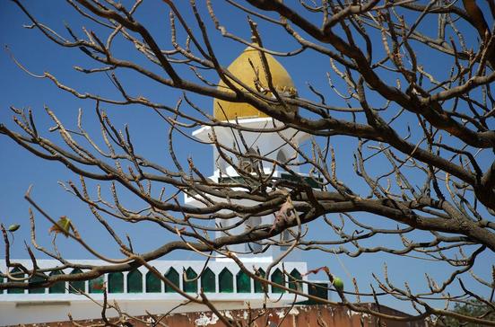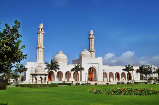 Sie ist längst nicht so groß wie ihr Pendant in Muscat, in dem 20 000 Gläubige Platz finden – hier sind es gerade mal 3200 Menschen. Ihr Interieur wirkt dafür nicht so überladen, sondern strahlt dank der hellen, freundlichen Farben vielmehr eine luftige Leichtigkeit aus. Dazu tragen auch die bunt bemalten Fenster bei, die viel natürliches Licht einlassen – so entsteht insgesamt eine einladende Atmosphäre, die zum Innehalten und Verweilen einlädt. Der separate Gebetsraum für die Frauen – die Ladies Prayer Hall – befindet sich auf der Nordseite der 2009 eingeweihten Moschee. Nichtmuslime beachten bitte die Kleiderordnung: lange Hosen für alle sowie langärmlige Oberbekleidung und Kopftuch für die Frauen.