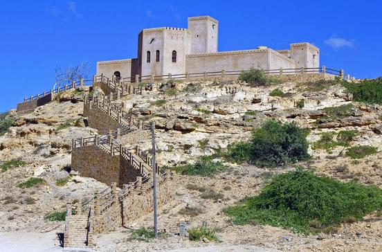 An den Ufern der Bucht Khor Ruri liegt auf einem Hügel, die antike Hafenstadt Sumhuram. Ihre Handelsverbindungen reichten ab dem 3.Jh.v.Chr. über Nordoman nicht nur bis in die Golfregion, sondern auch in den Mittelmeerraum und bis nach Indien. Damit war sie einer der wichtigsten Weihrauchhäfen dieser Zeit. Verschiedene Fundstücke wie Münzen, Amphoren oder Halbedelsteine belegen die Bedeutung Sumhurams ebenso wie seine Erwähnung – unter dem Namen Moscha Limen – in dem Schriftstück „Periplus Maris Erythraei“ (1.Jh.n.Chr.), das die wichtigsten Seehandelsrouten rund um das Rote Meer beschreibt. Die Hafeneinfahrt zwischen den beiden Felsen am Strand ist heute durch eine Sandbank versperrt und musste schon damals aufwendig offen gehalten werden. Zu der von der Unesco als Weltkulturerbe geführten Stadt gehörten neben dem Hafen mit Lagerhallen für den Weihrauch auch Wohnkomplexe und eine Tempelanlage mit großem Brunnen. Sumhuram entstand als Außenposten des jemenitischen Königreichs Hadramaut, das mit diesem Bau seine Vormachtstellung im Weihrauchhandel zu sichern hoffte. Am Ufer der Lagune unterhalb der befestigten Hafenstadt liegt das sehenswerte, aber wegen der Klimaanlage lausig kalte Museum, in dem viele Artefakte und eine Modellanlage des Hafens ausgestellt sind. Die Schautafeln an den Wänden informieren allerdings mehr über die Entwicklung des gesamten Sultanats als über die antike Weihrauchmetropole.