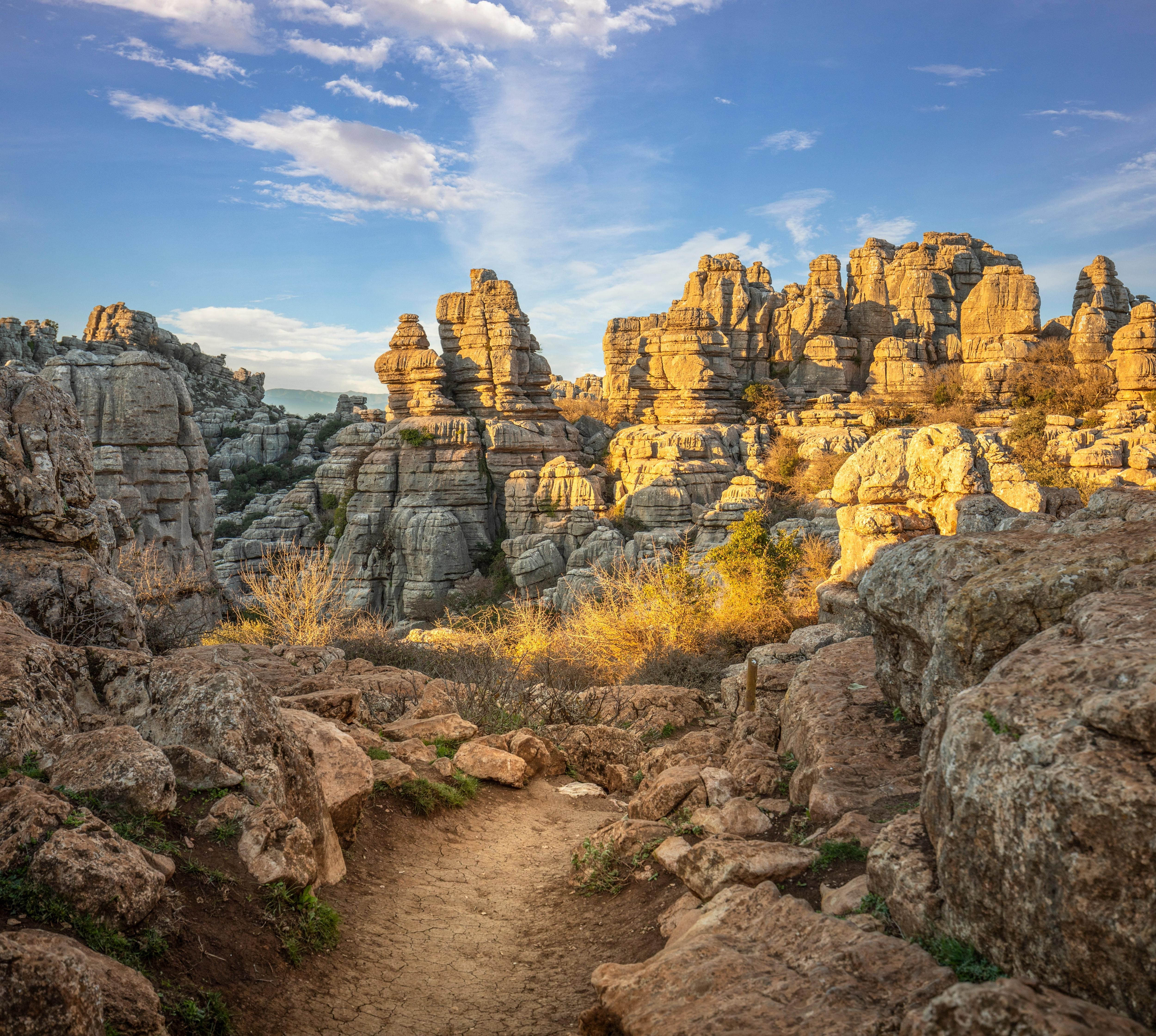 Mittendrin lockt die stilvoll herausgeputzte Metropole Málaga. Als Heimat des Malers Pablo Picasso hat sie sich zur Museumsstadt gemausert. Im Hinterland geht es hinauf in teils unter Naturschutz stehende Territorien mit Olivenhainen, Weingärten und weißen Dörfer wie Frigiliana und Cómpeta. Das Landstädtchen Antequera ist umgeben von beeindruckender Natur, die du wandernd erleben solltest, z. B. auf dem Caminito del Rey oder im Torcal de Antequera.