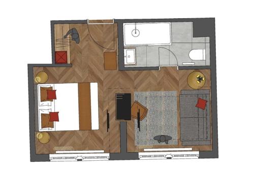 Die FeWo Central ist farbenfroh gehalten und verfügt über ein stylisches Design mit modernen Möbeln. Dieses Studio-Apartment bietet Ihnen einen Flachbild-Sat-TV sowie ein Bad mit einer Badewanne und einer Dusche.