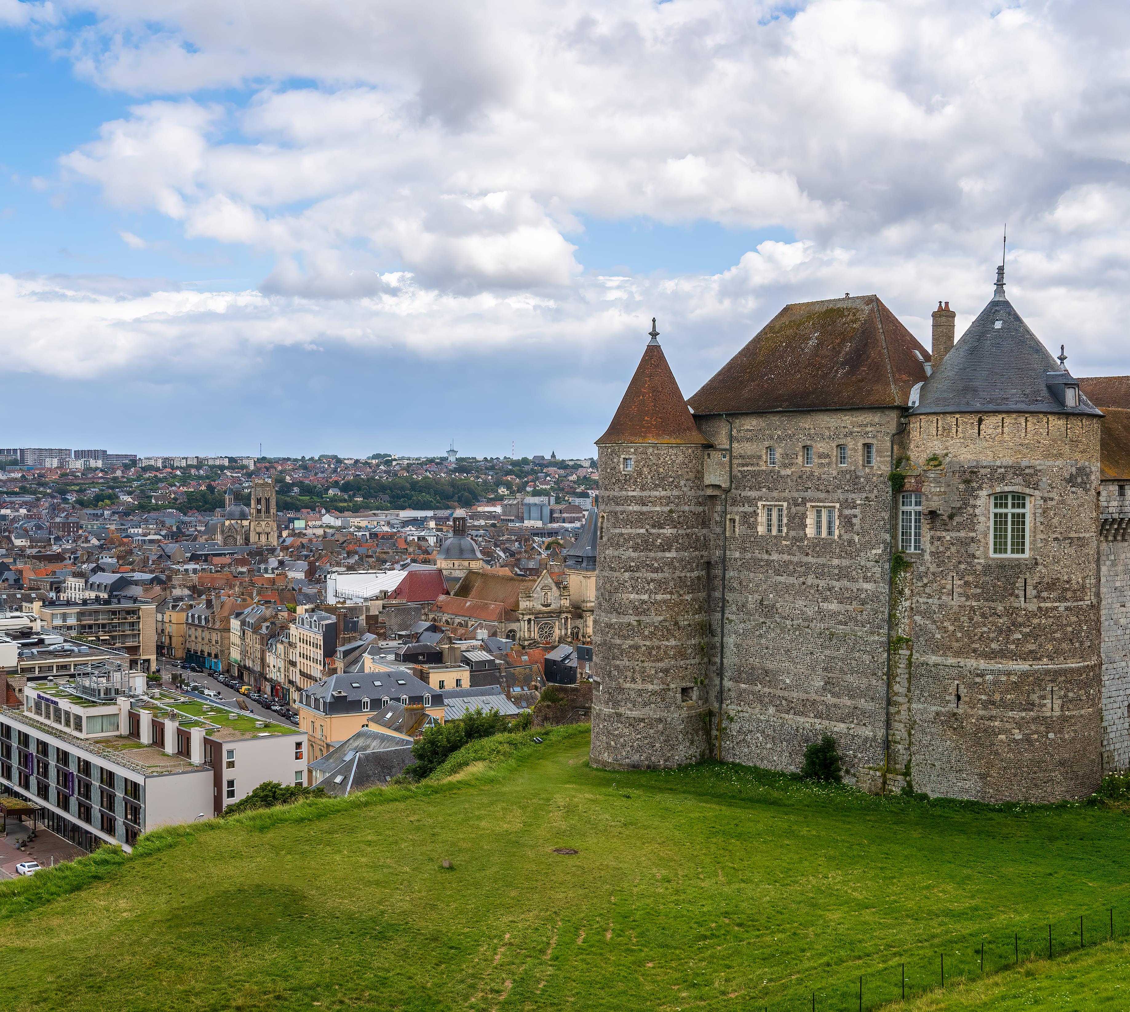 Auf einem Fels im westlichen Teil der Stadt liegt diese mächtige Festung aus dem 15.Jh., die zum Schutz der Stadt gegen die Engländer gebaut wurde. Ältestes Bauwerk ist der runde Westturm aus dem 14.Jh., um den herum sich die Anlage entwickelte. Der viereckige Turm entstand erst im 17.Jh. In der Burg ist ein sehenswertes städtisches Museum eingerichtet, das eine Sammlung von Elfenbeinschnitzereien und Gemälde, u.a. von Auguste Renoir, enthält.