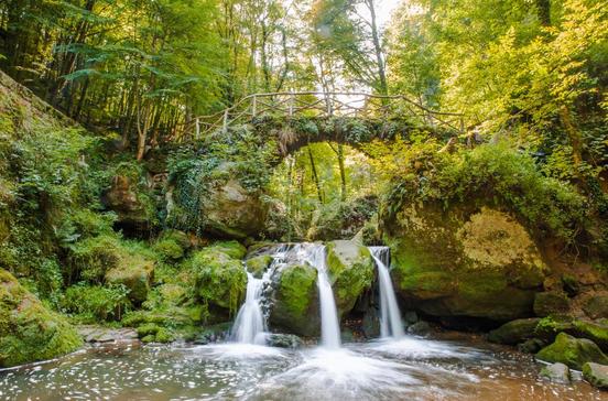 Westlich von Trier liegt die mit Abstand faszinierendste Landschaft Luxemburgs: Bei Grundhof beginnt das Müllerthal. Den spektakulären Canyon hat der Gebirgsfluss Schwarze Ernz senkrecht in die Sandsteinfelsen der Luxemburger Schweiz gegraben. Auf 112 km führt der Müllerthal Trail auf drei Wanderrouten durch Felsschluchten, Wälder, lichtdurchflutete Täler und entlang kleiner Wasserläufe. Die meisten Wanderer teilen die Gesamtstrecke in sechs Etappen auf – aber auch Tagestouren sind möglich. Los geht‘s in Echternach, der größten Stadt der Gegend mit 5800 Ew. am Grenzfluss Sauer. Bevor du die Wanderschuhe schnürst, lass dir Echternachs mittelalterliche Innenstadt und den Rokokostadtpark nicht entgehen.