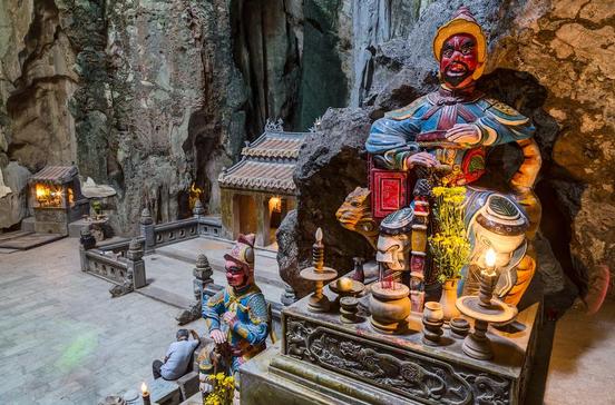 In der rund 30 m hohen Grotte Huyen Khong brennen zahllose Räucherstäbchen an der Statue des Thich Ca (Buddha der Gegenwart). Es entsteht ein stiller, feierlicher Zauber, wenn Sonnenstrahlen golden durch das Höhlendach hindurchscheinen, und die Betenden sich andächtig vor dem Buddha verneigen.