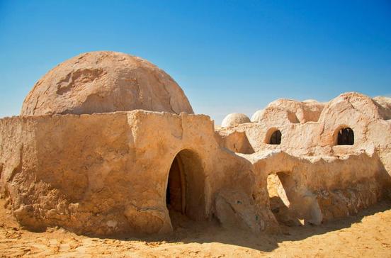 Rund 38 km nordwestlich von Tozeur und etwa 20 km nordöstlich von Nefta beginnt mitten in der Wüste der "Krieg der Sterne": Onk Jamal, was übersetzt Kamelkopf bedeutet, heißt die Felsformation, nahe der George Lucas für Dreharbeiten die Weltraumstadt Mos Espa erbauen ließ, in der Anakin Skywalker, der später als Darth Vader der dunklen Seite der Macht folgte, fast seine gesamte Kindheit verbrachte. Die Strecke dorthin besteht aus sandiger Piste und ist nur mit dem Geländewagen befahrbar. Von Tozeur aus kannst du Onk Jamal im Rahmen einer organisierten Tour besuchen.