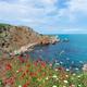 Nördlich des Kaps lohnt der Abstecher zur malerische Bucht Bolata mit fantastischem Sandstrand. Das unter anderem bei Tauchern besonders beliebte Areal ist Mündung eines kleinen Flusses und umgeben von hohen bordeauxfarbenen Felsen, in denen Höhlen gegraben sind. Archäologen fanden darin mittelalterliche Zeugnisse von aktiven Kontakten der Küstenbewohner mit den auf dem Seeweg anreisenden Händlern aus Genua und Venedig. Ein steiler Pfad an der nördlichen Seite führt zur Oberfläche der Felswand und entlohnt die Mühe mit einem fantastischen Panorama auf das vom Meer umschlungene Kap.