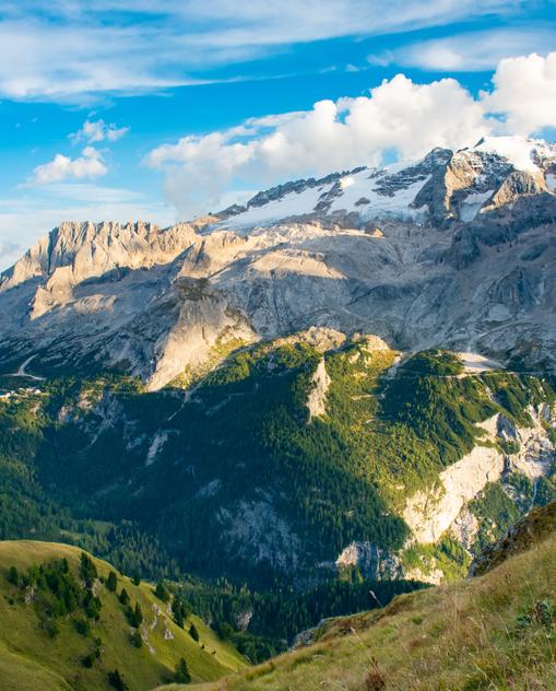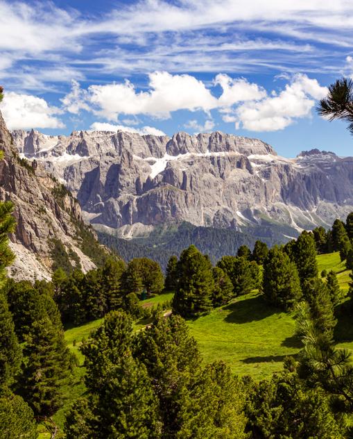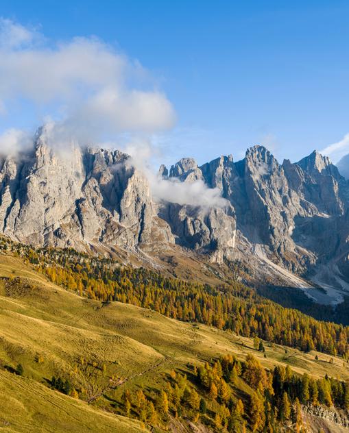 Zum Wohlbefinden trägt auch das Klima bei, das hier auf der Südseite der Alpen eine angenehme Mischung bietet: Die kühlen, rauen Winde aus dem Norden werden vom Alpenhauptkamm abgefangen, vom Mittelmeer her kommen wärmere Luftströme und sorgen für viele Sonnentage. So verwundert es nicht, dass mit der Erschließung der Region durch Bahnen und Straßen auch rasch der Tourismus einsetzte. Zuvor aber ließ der französische Marquis Déodat de Dolomieu Ende des 18.Jhs. bei seinem Aufenthalt in Tirol einen der weißen Steine der Gegend von einem Chemiker analysieren: Das später nach ihm benannte Gestein besteht aus Calcium-Magnesiumcarbonat, dadurch unterscheidet sich der Dolomit vom gewöhnlichen Kalkstein.Die Geburtsstätte des Dolomits ist das Meer, das vor rund 200 Mio. Jahren die Gegend bedeckte. Aus Ablagerungen kalkhaltiger Muschelschalen, abgestorbener Meerestiere und Korallen formten sich auf dem vulkanischen Urgestein Erhebungen, die später durch die Kollision der Kontinentalplatten einen gewaltigen Schub in die Höhe erhielten. Nach der letzten Eiszeit vor ca. 10 000 Jahren entstand schließlich eine paradiesische Kulisse aus Gipfeln, Hängen und Wäldern.
