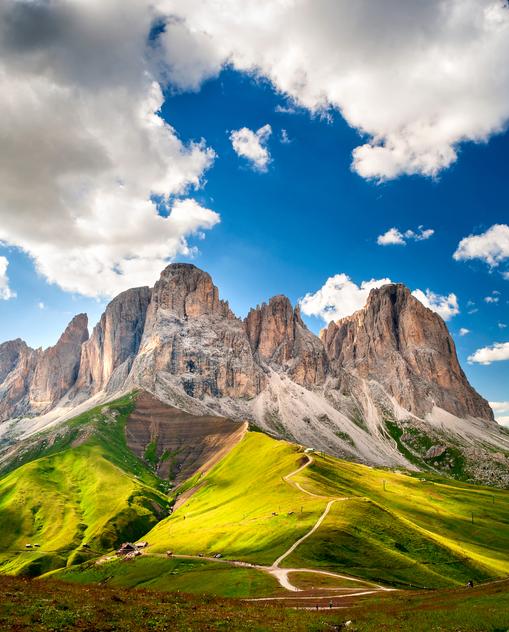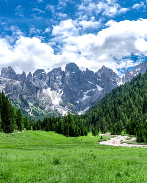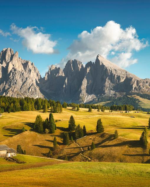 Die Einzigartigkeit der Landschaft – auch dank dieser Eigenschaft wurden die Dolomiten von der Unesco zum Welterbe erklärt. Eine einmalige Komposition ist diese Bergwelt, in der dichte Wälder und idyllische Hochtäler von markanten Gipfeln überragt werden. Es sind besondere Berge, die durch ihre unterschiedlichen Formen, ihre Gesteinssorte und die Ruhe und Beständigkeit faszinieren, die sie ausstrahlen. Dabei ist es eine Sache, die berühmten Dolomitengipfel auf Bildern zu sehen, oder tatsächlich das Schlernmassiv oder die Marmolada, den höchsten Dolomitengipfel, aus der Nähe zu erleben, verborgene Seen zu entdecken und die Menschen, die auf der Höhe oder in den Dolomitentälern leben, kennenzulernen. Die Abgrenzung des Gebietes folgt markanten natürlichen Linien: im Nordwesten dem Eisacktal, dem Pustertal im Norden, und den Flüssen Piave im (Süd-)Osten und Sarca im Westen. Die Täler, oft durch mächtige Dreitausender voneinander getrennt, haben unterschiedliche Charakterzüge entwickelt. Das Pustertal ist grün und waldreich, das Eisacktal stellenweise eng und dunkel, mit zerklüfteten Hängen. Das Piavetal weitet sich in der Gegend von Pieve di Cadore, und das Tal der Sarca schmiegt sich an die Adamello- und Brentagruppe.