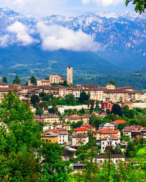 In den fruchtbaren Talsohlen siedelten zunächst Jäger, dann Bauern, ihnen folgten im Lauf der Jahrhunderte verschiedene Herrschaftssysteme: von den Römern über Kleinstaaten bis hin zu Bischofs- und Fürstentümern. Die Städte am Rand der Bergregion entwickelten sich zu Residenzstädten geistlicher und weltlicher Fürsten, wie Trient und Brixen, oder zu wichtigen Handelszentren, wie Bozen und Belluno. Bedarf an den Dolomitenrohstoffen Eisen und Kupfer war im Mittelalter überall gegeben, und Venedig brauchte die kostbaren Lärchen aus Belluno für den Schiffsbau. Bei Feltre führte die Via Claudia Augusta, eine römische Heeresstraße, über die Alpen nach Augsburg. Im 19.Jh. wurden die Verbindungswege unter österreichischer Herrschaft ausgebaut und viele Arbeitsplätze für die Belluneser geschaffen.