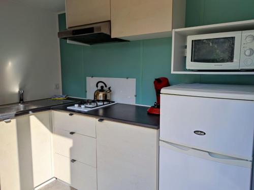 Dieses Ferienhaus bietet 2 Schlafzimmer, einen TV, eine gut ausgestattete Küche mit einem Kühlschrank und einer Mikrowelle sowie 1 Badezimmer mit einer Dusche.