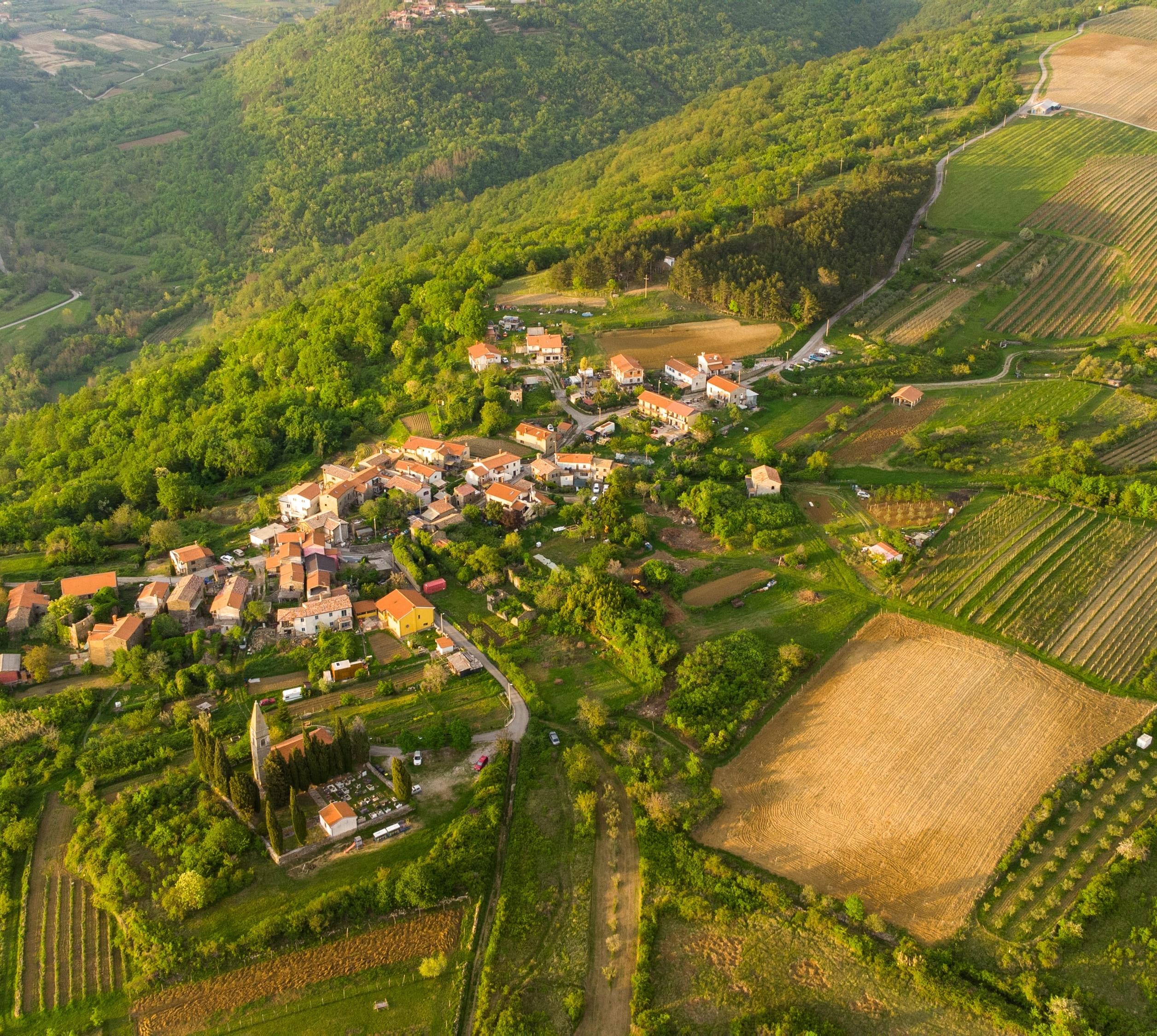 Das etwa 300 m über dem Meer, nahe der slowenischen Grenze gelegene Dorf bietet einen schönen Blick über die Bucht von Piran: Bei klarem Wetter können sogar die Gipfel der slowenischen Alpen erspäht werden. Zudem wird hier auf den Winzerhöfen manch guter Tropfen gekeltert.