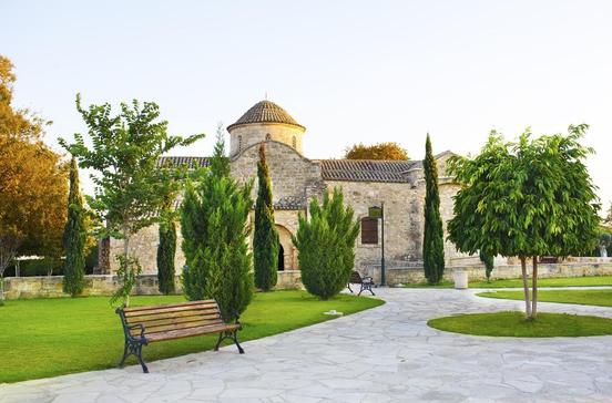 Am Salzsee von Lárnaka steht das einst wichtigste islamische Heiligtum, heute das beliebteste Fotomotiv der Insel. Als die Araber 647 Zypern erstmals überfielen, war auch eine edle Frau dabei, die den Propheten Mohammed gut gekannt hatte. An der Stelle, an der heute die Moschee steht, stürzte sie vom Maultier und starb. Ihr Grab wurde später zu einer Wallfahrtsstätte, an die sich die Moslems noch erinnerten, als die Türken die Insel 1571 eroberten. Aber erst 1816 ließ der türkische Statthalter auf Zypern die Moschee bauen, der später Pilgerunterkünfte angeschlossen wurden. Die Moschee ist sehr schlicht. Vom Betsaal (er darf nicht mit Schuhen betreten werden!) gelangt man in einen Anbau, wo im Halbdunkel jene Grabstätte der verehrten Frau zu finden ist.