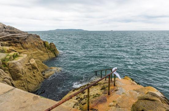 Schwimmer, die sich ins kalte Wasser der Irischen See trauen, steigen am besten am Forty Foot hinein.