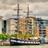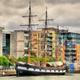 Der Dreimaster Jeanie Johnston, Nachbau eines "Hungerschiffs" von 1847, ankert an der Sean O'Casey Bridge.