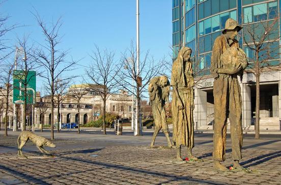 Die modernen Plastiken bewegen sich östlich des Custom House und sollen an die schweren Hungersnöte der 1840er Jahre erinnern. Über eine Million Iren starben, noch mehr wanderten aus.