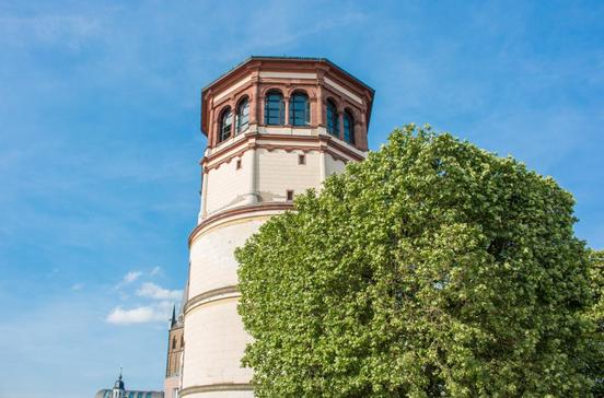 Auch Düsseldorf hat einen schiefen Turm: den Kirchturm von Sankt Lambertus. Auf den Resten einer romanischen Kirche erbaut, erlebte das Gotteshaus seine Blütezeit als Wallfahrtsort. Einen Blick wert sind die Misericordien im Chorgestühl.