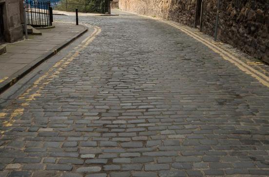 Die Andeutung einer historischen Stadtmauer findet man heute noch im Straßenasphalt zwischen Greyfriars und dem Nationalmuseum.