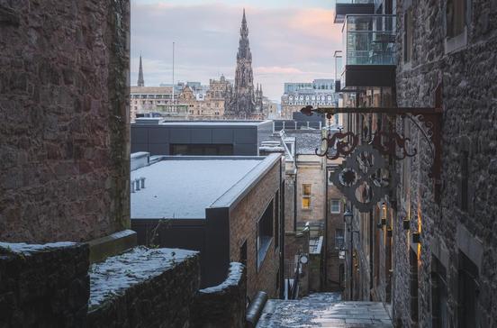 Von der Gasse aus, deren Name daran erinnert, dass Stevenson, Scott und Boswell Rechtsanwälte waren, hat man den schönsten Ausblick Richtung Neustadt.
