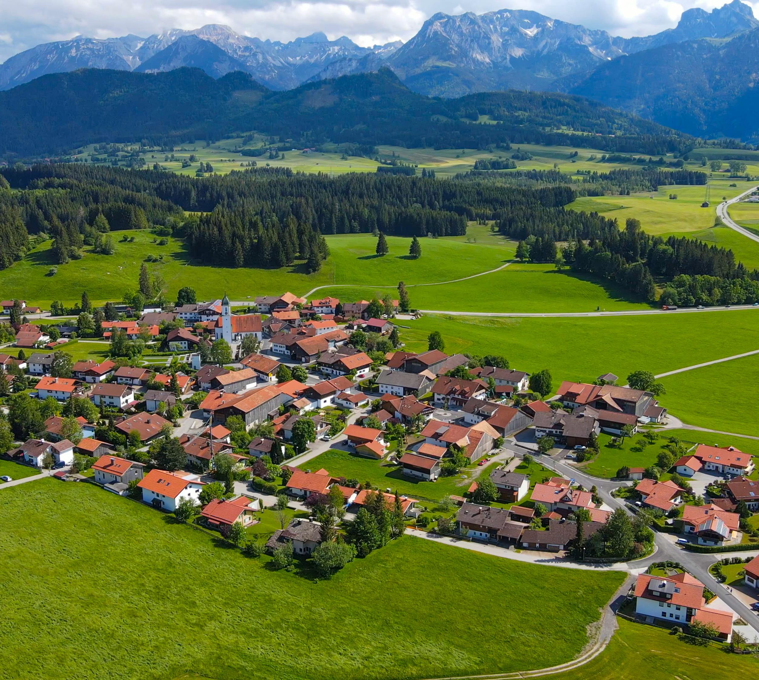 Der 4 km nordöstlich von Pfronten gelegene Erholungsort (1150 Ew.) verteilt sich auf 17 Dörfer und Weiler (800–1050 m). Auf der Höhe liegen die Ruinen der Ritterburgen a Eisenberg und Hohenfreyberg aus dem Mittelalter. Die barocke Kapelle Maria Hilf aus dem Jahr 1635 in Speiden enthält ein Gnadenbild aus dem 14.Jh. und Wessobrunner Stuckatur. Unmittelbar daneben steht die Wallfahrtskirche von 1664 mit sehenswerten Rokokoaltären und Schnitzarbeiten. Einkehren kannst du im Sommer z. B. auf der Alpe Kögelhof