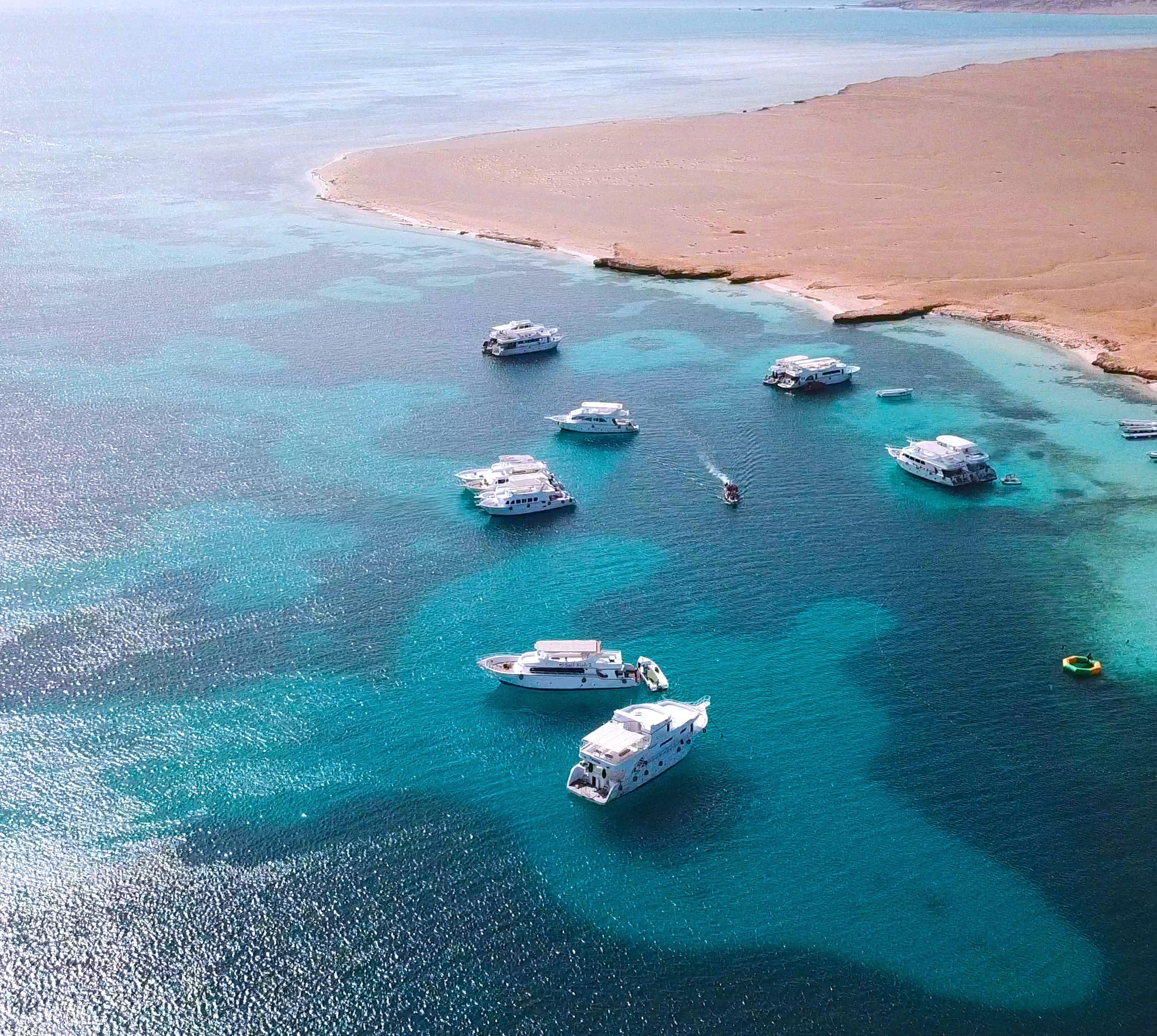 Der Himmel blau, das Meer auch, die Strände weit und sandig. Felsige Buchten, Korallenriffe, Palmenhaine und rötlich leuchtende Gebirgshänge im Hinterland – Ägyptens Rotmeerküste ist das ganze Jahr über der ideale Platz, um die Seele baumeln zu lassen. In den vergangenen Jahren sind überall Feriensiedlungen, Tauch- und Surfcenter entstanden. So ist aus der Vision von der „Riviera des Nahen Ostens“ inzwischen ein riesiges Zentrum des Tourismus mit Hunderten Strandresorts geworden.