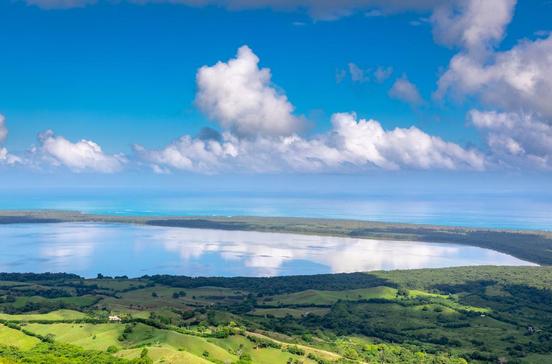 Von dem gut 300 m hohen, grünen Karsthügel hast du einen tollen Panoramablick über das Hinterland von Miches: Der Blick reicht im Westen bis zur Samanábucht (in der Walsaison von Januar bis März Fernglas nicht vergessen!) und direkt unter dir liegen die beiden Lagunen an der Küste. Schwindelerregend ist der Blick, wenn du hier auf der Schaukel sitzt oder an der Zipline runterrutschst!