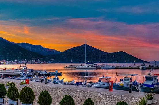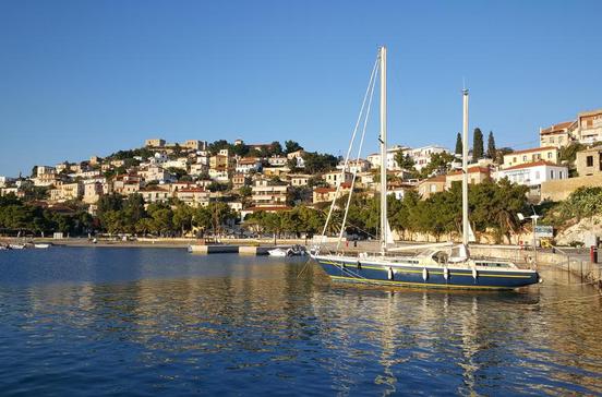 Der moderne Ferienort (870 Ew.) 45 km östlich mit seiner weithin sichtbaren, erst 1825 erbauten Burg und einem kilometerlangen Kiesstrand ist vor allem bei griechischen Urlaubern beliebt.