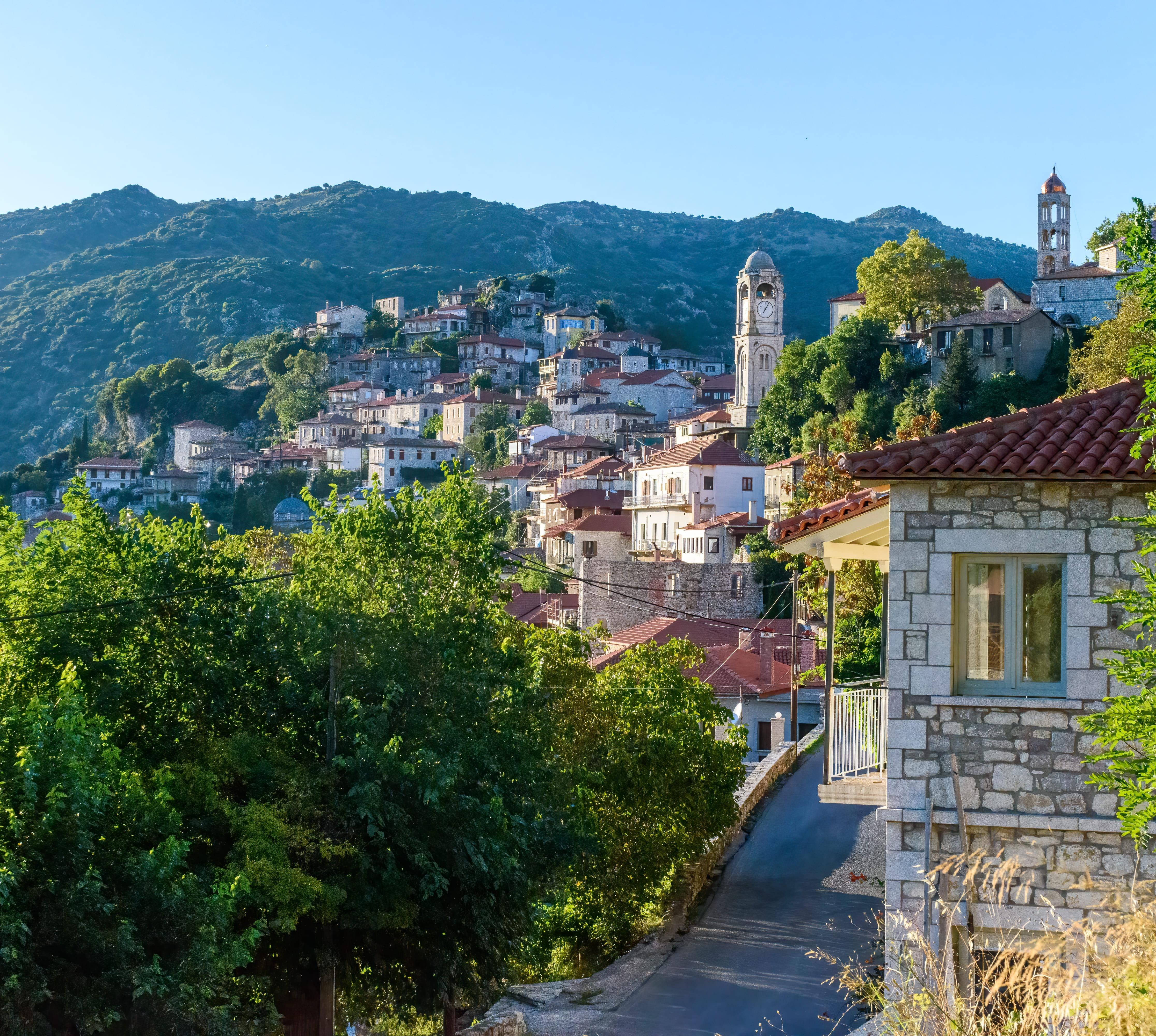 Raus aus der Hitze, klare Bergluft atmen – und das in einem der schönsten Bergdörfer des Peloponnes. An der schnuckeligen Platía fließt Wasser aus einer Platane, freitags findet hier ein kleiner Wochenmarkt statt. Viele Läden wirken wie aus Großmutters Zeiten, das Lamm in den Tavernen schmeckt nach Bergkräutern.