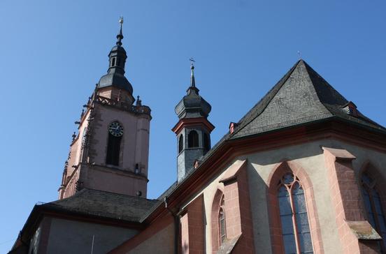 Das zwischen 1350 und 1440 erbaute Gotteshaus im zweischiffigen Hallenstil verkörpert eindrucksvoll ästhetisch die schlichte spätgotische Bauweise. Ein architektonischer Stilbruch ist hingegen die barocke Haube des Kirchturms, die Ende des 17.Jhs. anstelle der durch ein Feuer zerstörten früheren aufgesetzt wurde. Wand- und Gewölbemalereien im Inneren stammen aus dem frühen 15.und 16.Jh., während ein kostbares achtseitiges Taufbecken um 1517 in der Mainzer Werkstatt von Hans Backoffen hergestellt wurde. Es zeigt bereits den zunehmenden Einfluss der Renaissance.