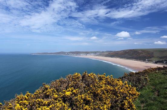 Barricane Beach bei Woolacombe ist der wohl schönste Strand der Gegend, Croyde besitzt hervorragende Surfbedingungen.