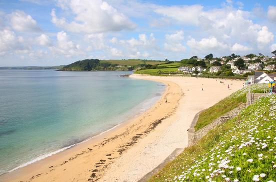 Er ist einer der beliebtesten Strände der Gegend, aber auch der schönste: Gyllyngvase Beach, ein Sandstrand umgeben von Hotels und begrünter Küste.