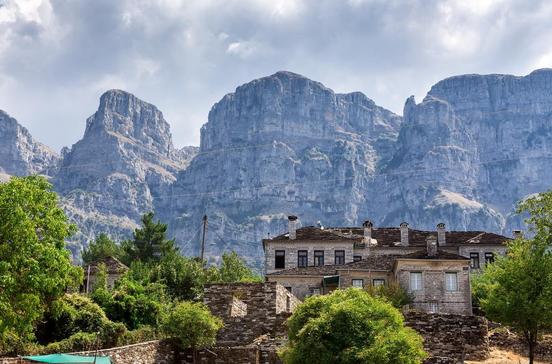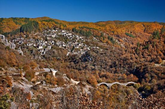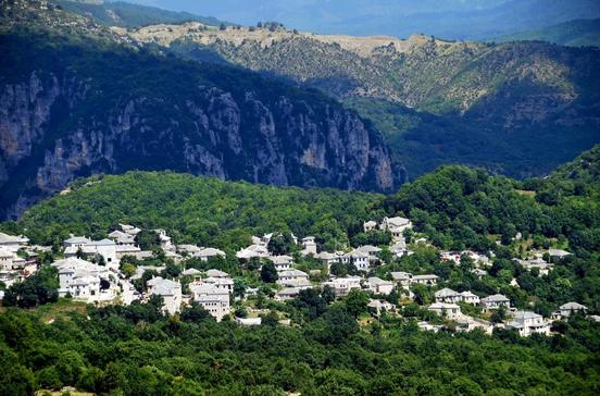 Das nur noch 110 Bewohner zählende Dorf im Herzen des Landstrichs Zagóri ist ein vom Tourismus nur wenig berührtes Schatzkästlein traditioneller Architektur, eingebettet in üppiges Grün. In seiner näheren Umgebung überspannen acht schöne Brücken aus der Türkenzeit den Voidomátis und seine Nebenflüsse. Kurz vor dem Dorf steht unterhalb der Straße von Ioánnina her die besonders fotogene, dreibogige Brücke tou Plakída (1814) und kurz darauf links der Straße in einer Schlucht die einbogige Brücke tou Kondodímu (1753). Am Ortsende geht ein Feldweg nach 120 m zur dreibogigen Mólos-Brücke aus dem 18.Jh. ab, die zu einer erhaltenen Wassermühle am anderen Flussufer führt.